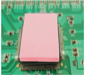 (4). Tear off one side of the protective film, facing towards the heat sink, and align the thermal conductive silicone film with the heat sink first. Slowly lower the thermal conductive silicone sheet. Be careful to avoid the formation of bubbles.